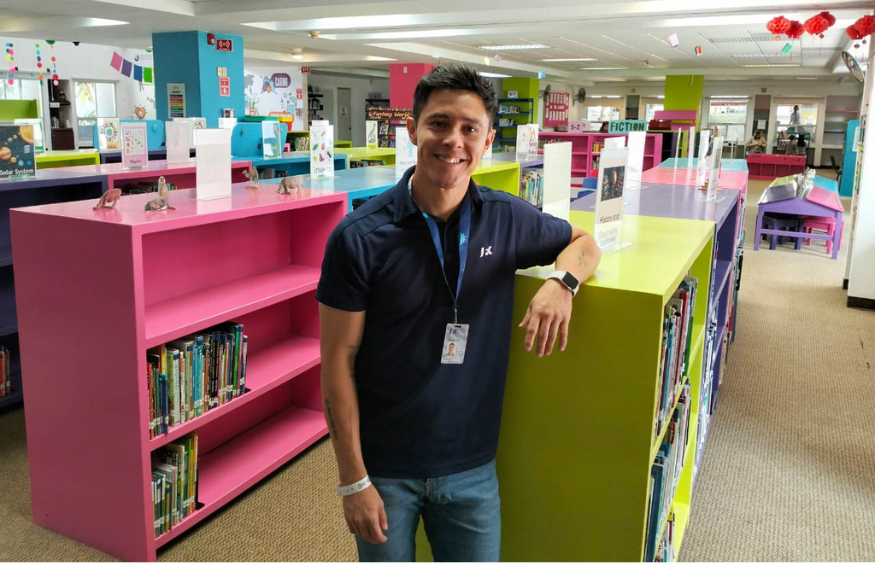 What he values most about his work in the library is the opportunity to build trust with students. Sometimes, they see him as a safe space; whether it’s helping them find a book, talking about video games, or simply listening, Uriel strives to connect with them on their level and create meaningful interactions.