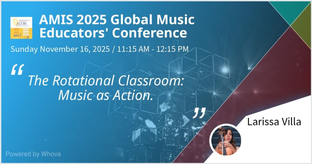 Durante este encuentro internacional de educadores, nuestra maestra de Middle School, Larissa Villa, presentó la conferencia “The Rotational Classroom: Music in Action”, un enfoque pedagógico que refleja su visión de la educación musical: dinámica y creativa. Su presentación exploró cómo los ambientes de aprendizaje basados en el movimiento, el sonido y la colaboración pueden transformar la participación y fortalecer la conexión con los conceptos musicales. Más que hablar de una metodología, compartió una experiencia que vive día con día, mostrando cómo la música puede convertirse en acción, diálogo y transformación.