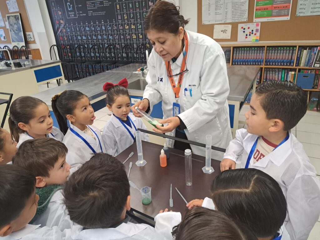 Guiados por Miss Guadalupe Rivas y Miss Adriana Vega, los alumnos recorrieron distintos módulos dentro del laboratorio, donde conocieron de manera cercana el trabajo que realizan los científicos. A través de las estaciones de Biología, Física y Química, exploraron cómo los científicos estudian los seres vivos, realizan experimentos, mezclan sustancias y observan fenómenos para comprender mejor el mundo que nos rodea.